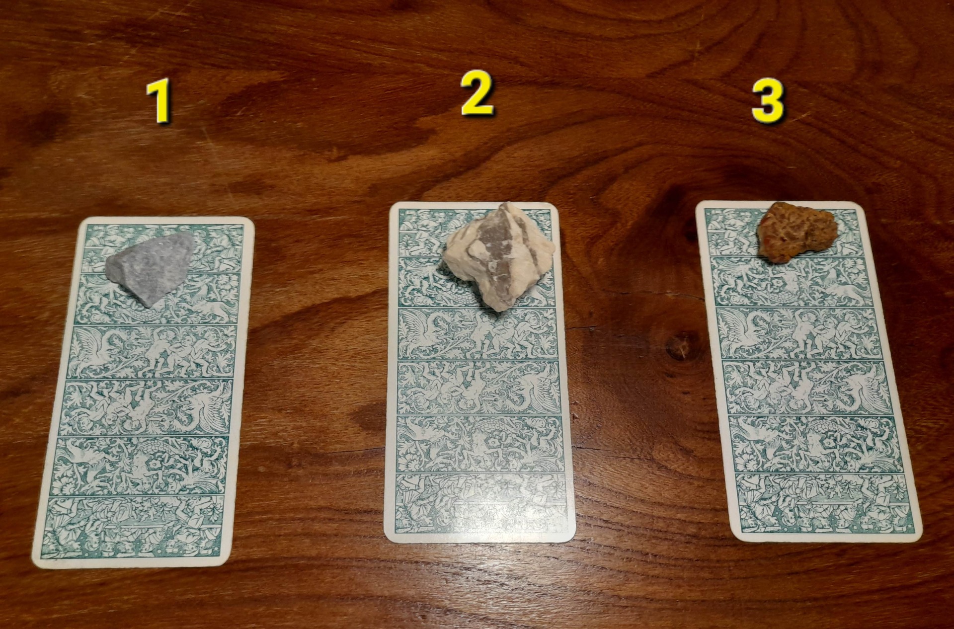 Oggi ho voluto provare un gioco o esperimento ( decidete voi come preferite chiamarlo ) nuovo , una stesa tutta particolare , sapete quanto ami associare i tarocchi ai minerali ma non avevamo mai parlato delle pietre che li accompagnavano , oggi scegliete bene la carta dalla uno alla tre perché con lei vi risponderà anche il minerale annesso.