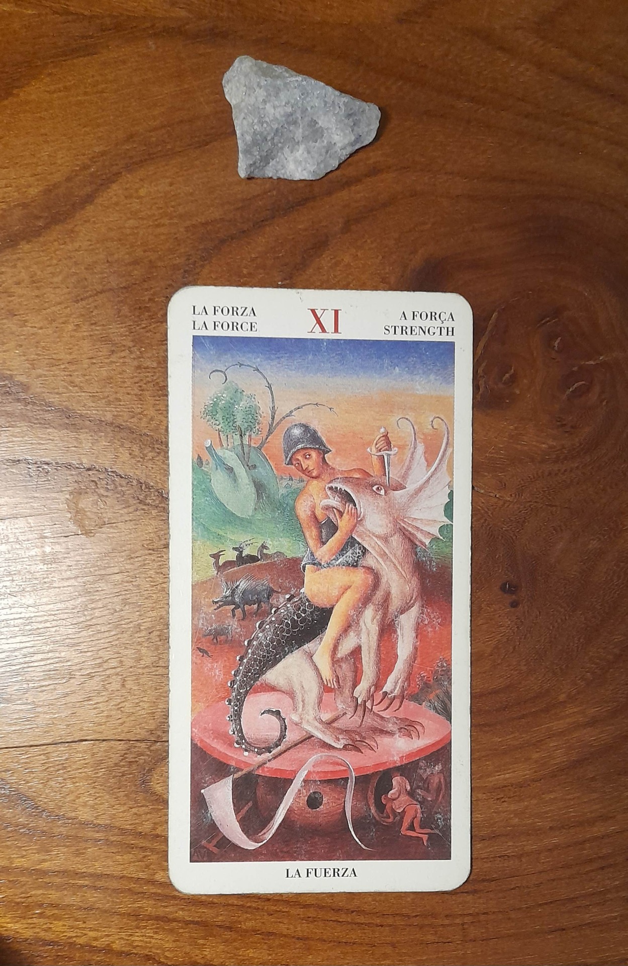 Avete una grande forza di spirito , di iniziativa e sapete perseguire i vostri obbiettivi con verve combattiva , è decisamente il periodo giusto per essere intraprendenti portate con voi un aragonite ( il cristallo collegato alla carta ) vi aiuterà nei periodi di stress e sederà i possibili attacchi d'ira . Con lei sempre con voi la pazienza non vi mancherà dote molto importante per non farsi sbarrare dagli ostacoli della vita e per poterli affrontare con il giusto spirito .